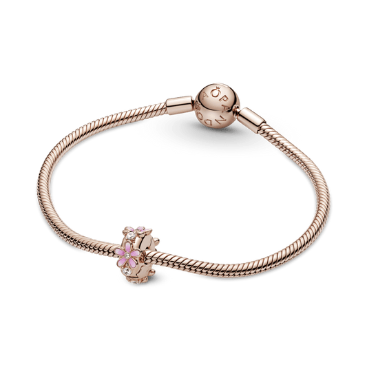 Clip Charm Fijo Margarita Rosa Recubrimiento en Oro Rosa