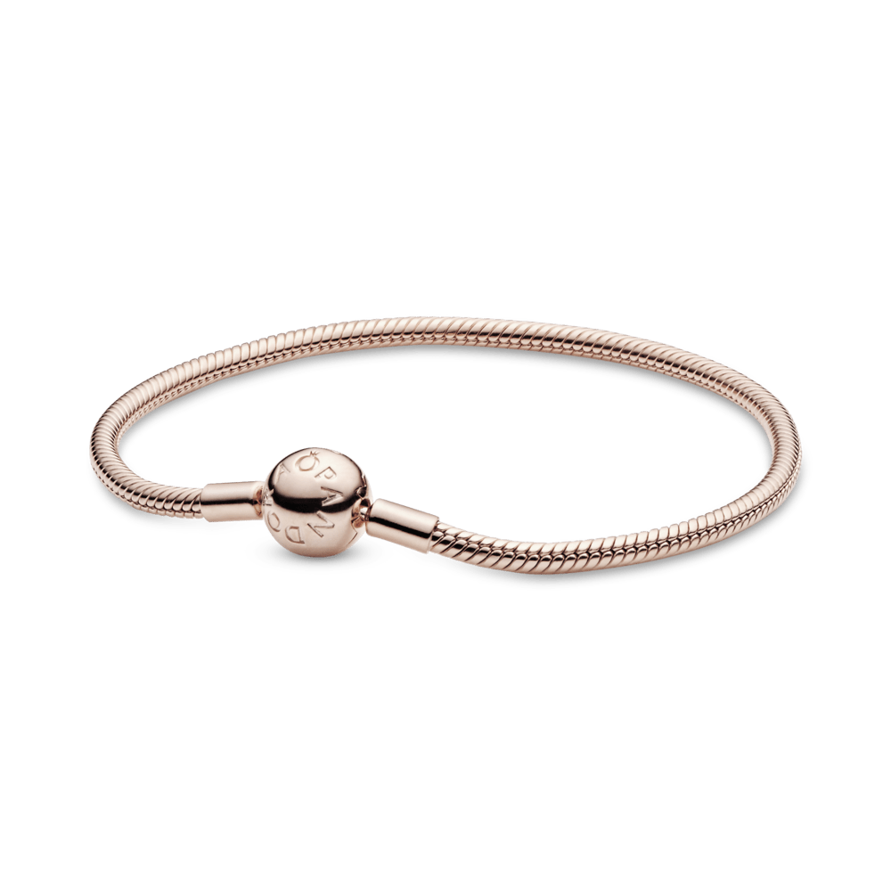 Comience su propia historia de Pandora con este elegante brazalete de cadena de serpiente en Pandora Rose, una mezcla de metal única chapada en oro rosa de 14k. El lienzo perfecto para su creatividad, este brazalete acabado a mano se puede diseñar de innumerables maneras. Llénalo con tus charms y clips deseados, úsalo solo para una apariencia simple y discreta, o apílalo con pulseras contrastantes para un divertido juego de texturas: ¡el único límite es tu imaginación!